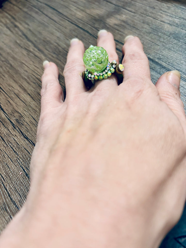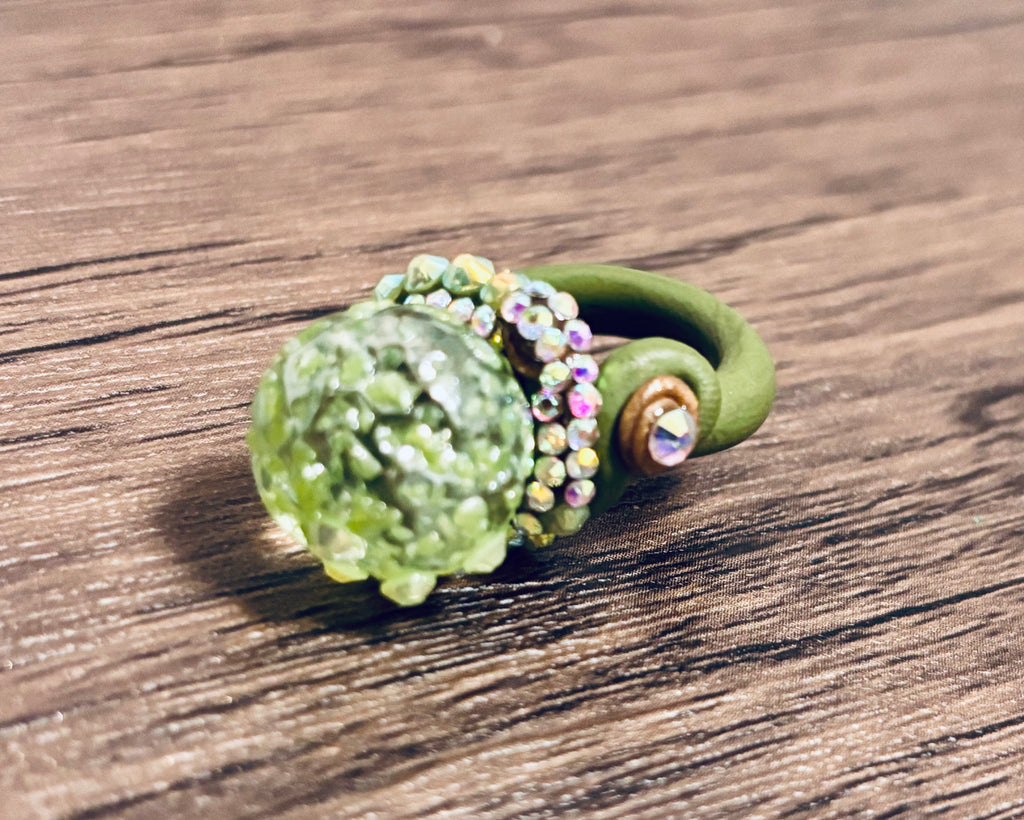 polymer clay forest fairy ring with magical green crystal ball style gem with rhinestone accents